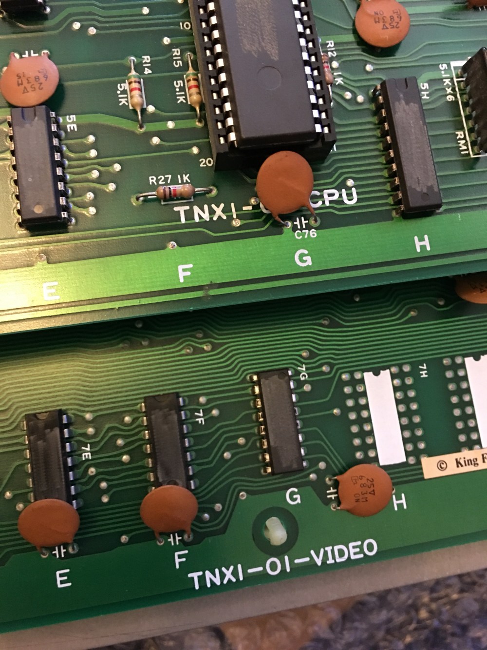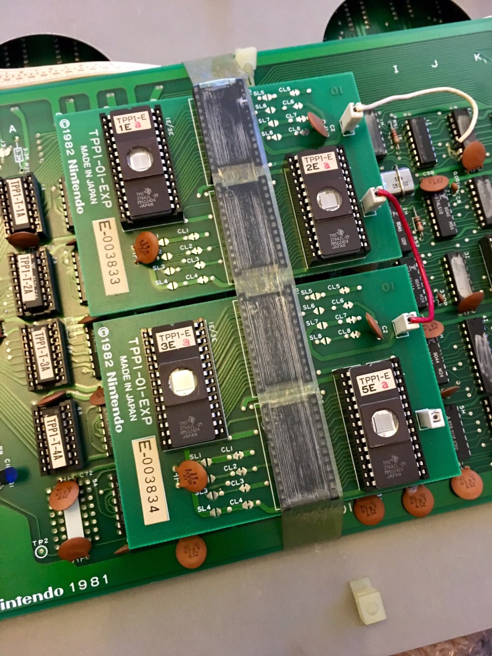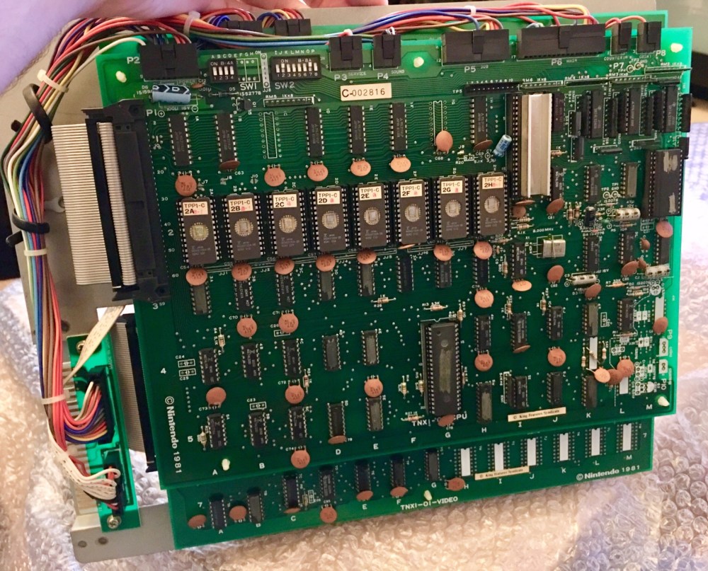 After many months of hunting (and many failed attempts at convincing other discoverers to sell me theirs!) I found an auction listing in Japan for a part working Popeye board. I knew that the TNX boards were converted to Popeye and I’m sure I remembered something about the board not inverting colours like all other Nintendo boards (this was one of the main faults listed…). After a frantic few hours and lots of deposits of Yen into my Japan Auctions site, the board was mine! I anxiously awaited the notifications of delivery from the forwarding company in Japan and then paid the necessary shipping to get it over here.