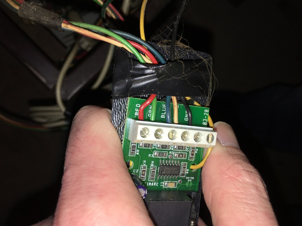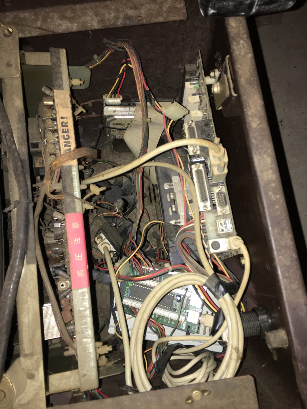 I left the board that the control panels (IPAC) are wired too just incase there’s any chance of saving the looms (so I can quickly work out what cable runs to what). You can see in the above picture the “genius” way of providing power to the original power supply and the ATX power supply connected to the PC components. Oddly, the original power supply was still in the cabinet, but I couldn’t work out what it was supposed to be feeding power to: