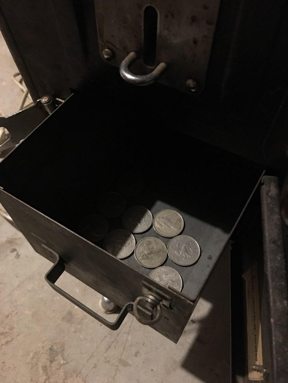Another nice feature is the inclusion of a coin box (with a few old 10p pieces):