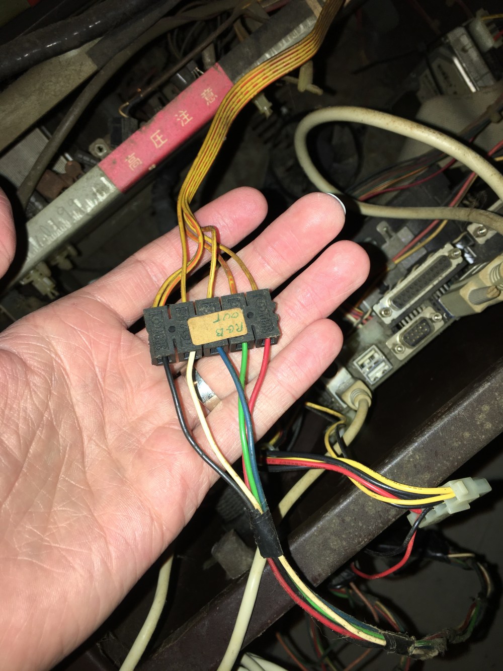 During this transplant, pretty much every part of the original loom has been chopped to hook the original controls (minus the Sheriff dials!) and monitor to these new internals. Even the monitor cable, which is soldered at the monitor end had been chopped and rigged up to a VGA connection: