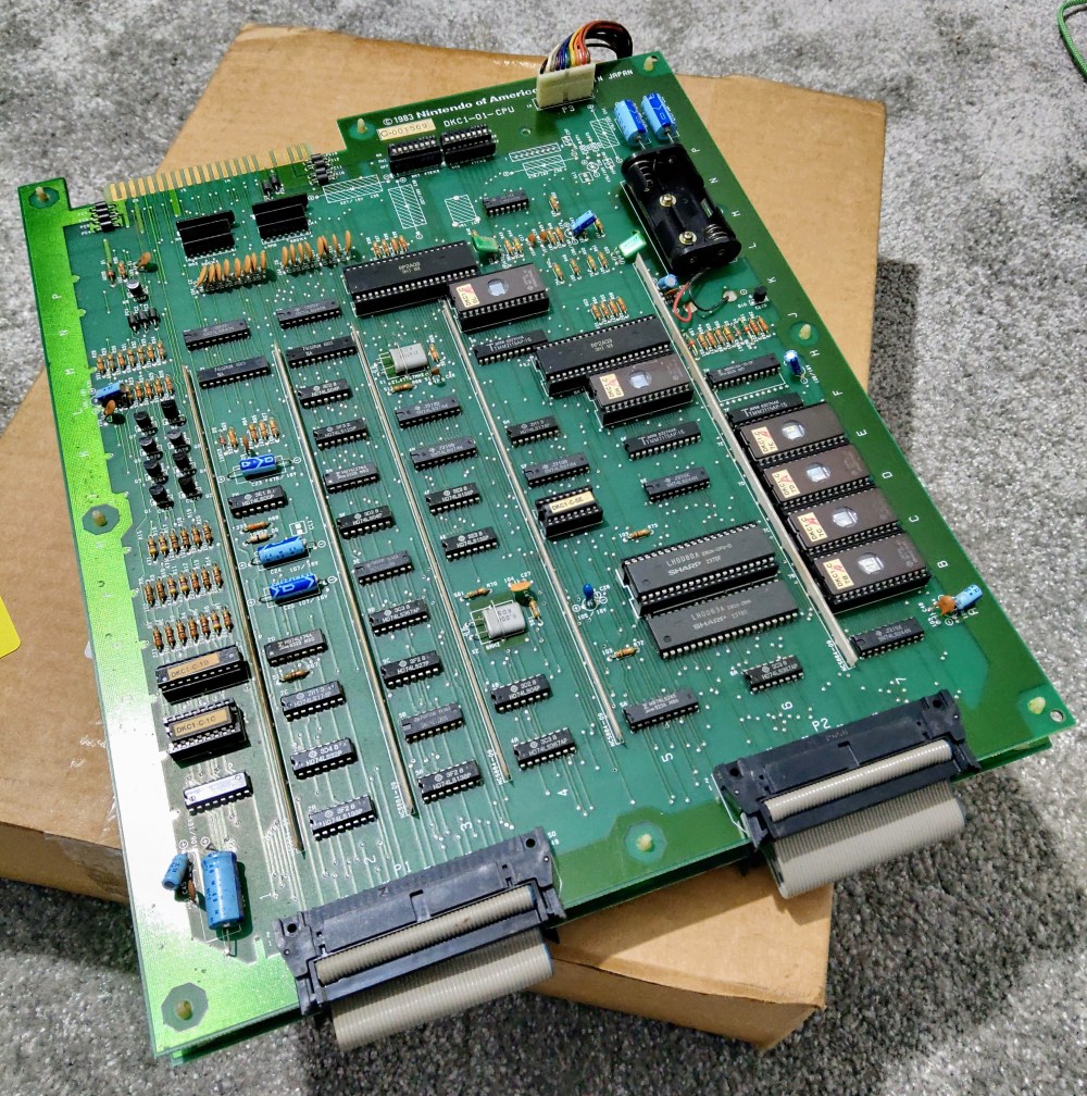 Last of the smaller purchases was a Donkey Kong 3 PCB. Advertised by a seller in the US as “Working, but with colour issues”. Going by the listing it appears the board runs fine but struggles with blue. A good board I though to start me off teaching myself how to diagnose/repair PCBs.