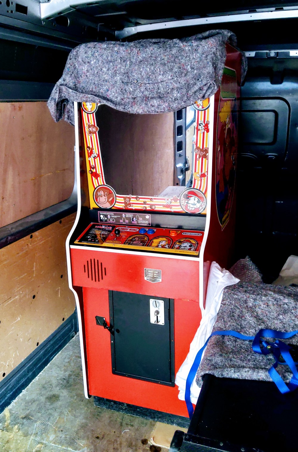 I picked up the van at 9am Saturday and pulled back onto my drive at 1am Sunday. I loaded the van up with moving blankets and ratchet straps and returned with three arcades. First pickup was a UK Nintendo PlayChoice cab: