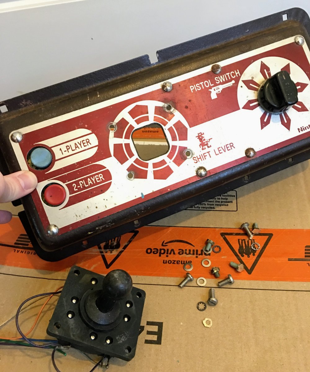 The poor control panel overlays had taken the full brunt of the “modification” and were now sporting unsightly holes around the joystick. These will have to stay for the time being as finding replacement overlays is going to be a nigh-on impossible task.