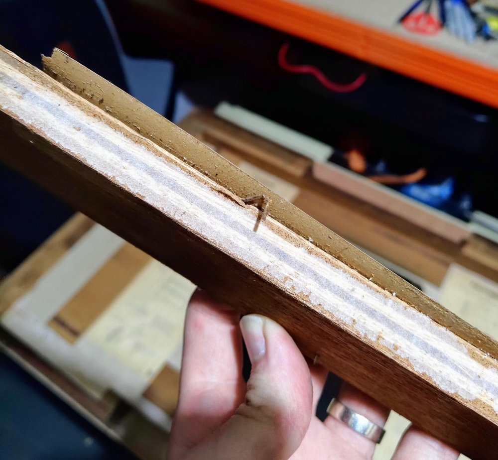So first job was to tidy up the two parts and re-glue the part back into place. There were a number of old staples that needed to come out first before the piece could be put back into place.