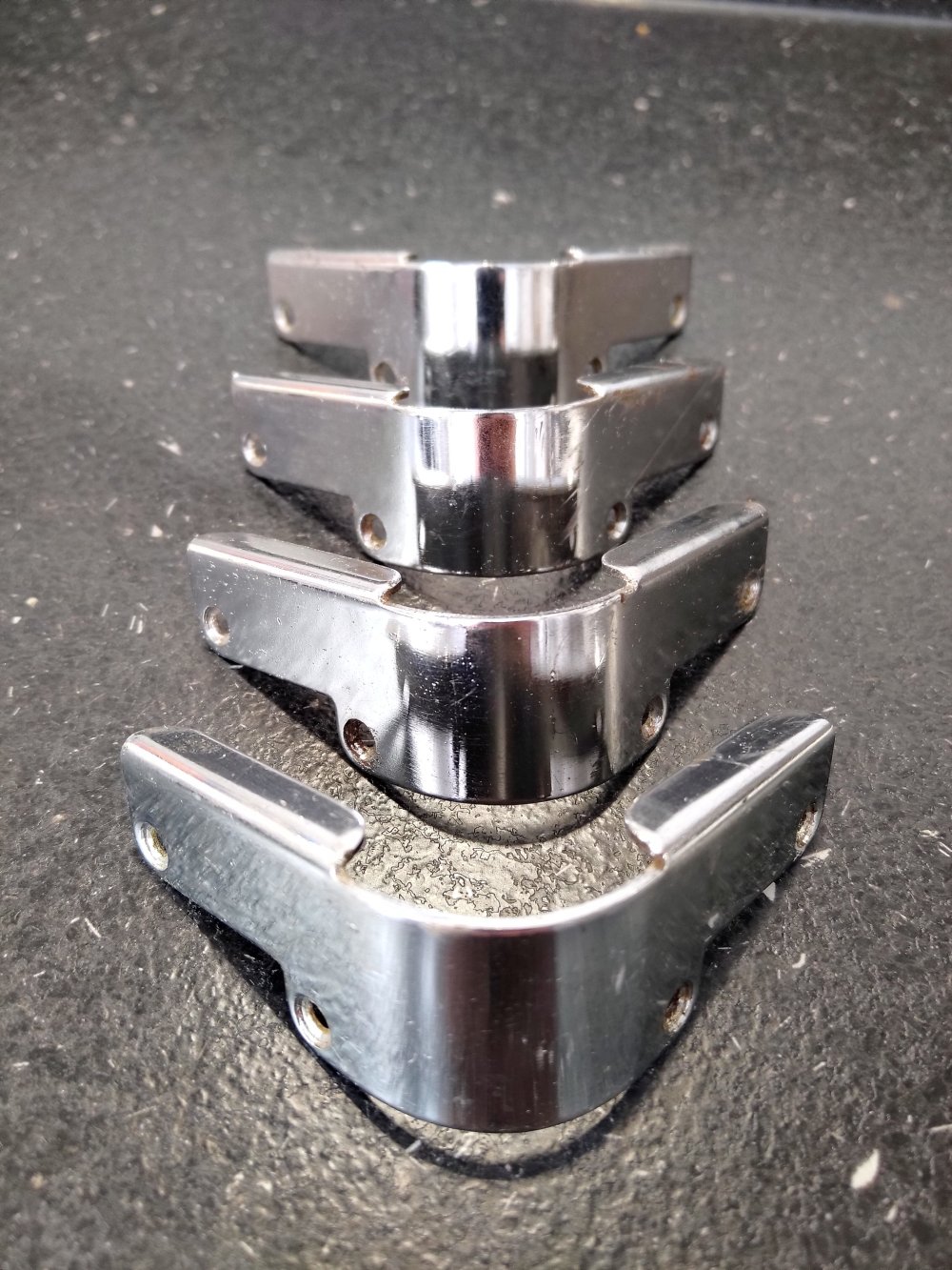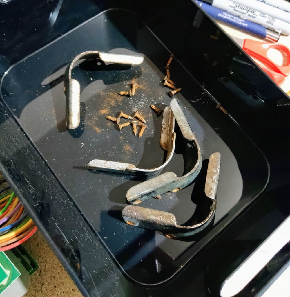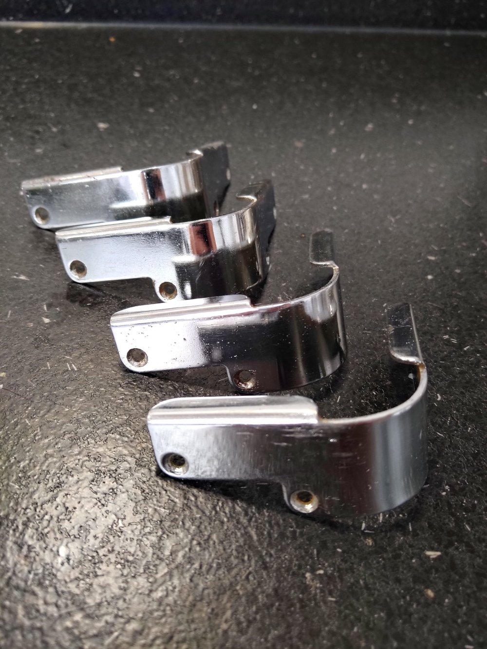 I placed the clips into place and screwed them down. Unfortunately, the screws didn’t fair as well as the clips and were still very unsightly. Luckily, I found a full set of replacement screws in one of my parts boxes, so I’ll replace those next.