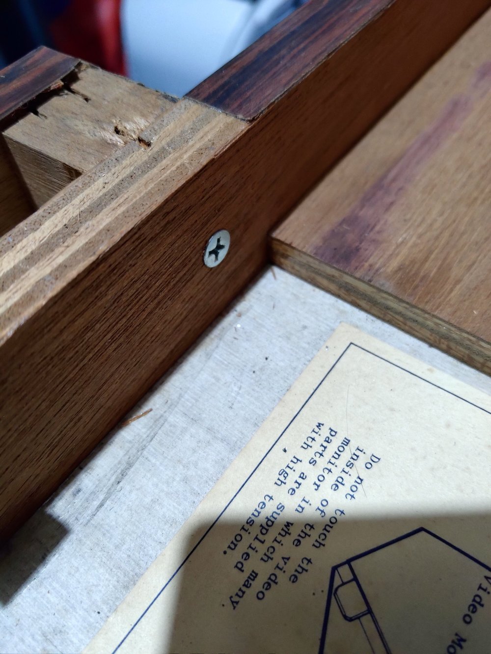 The first big thing I noticed was that the lid was partially detached. When I got the cocktail out of my boot and had a look, the issue was with the piece of wood that the hinges are attached to. It’s supposed to be glued to the inside of the lid, but the glue had clearly given way.