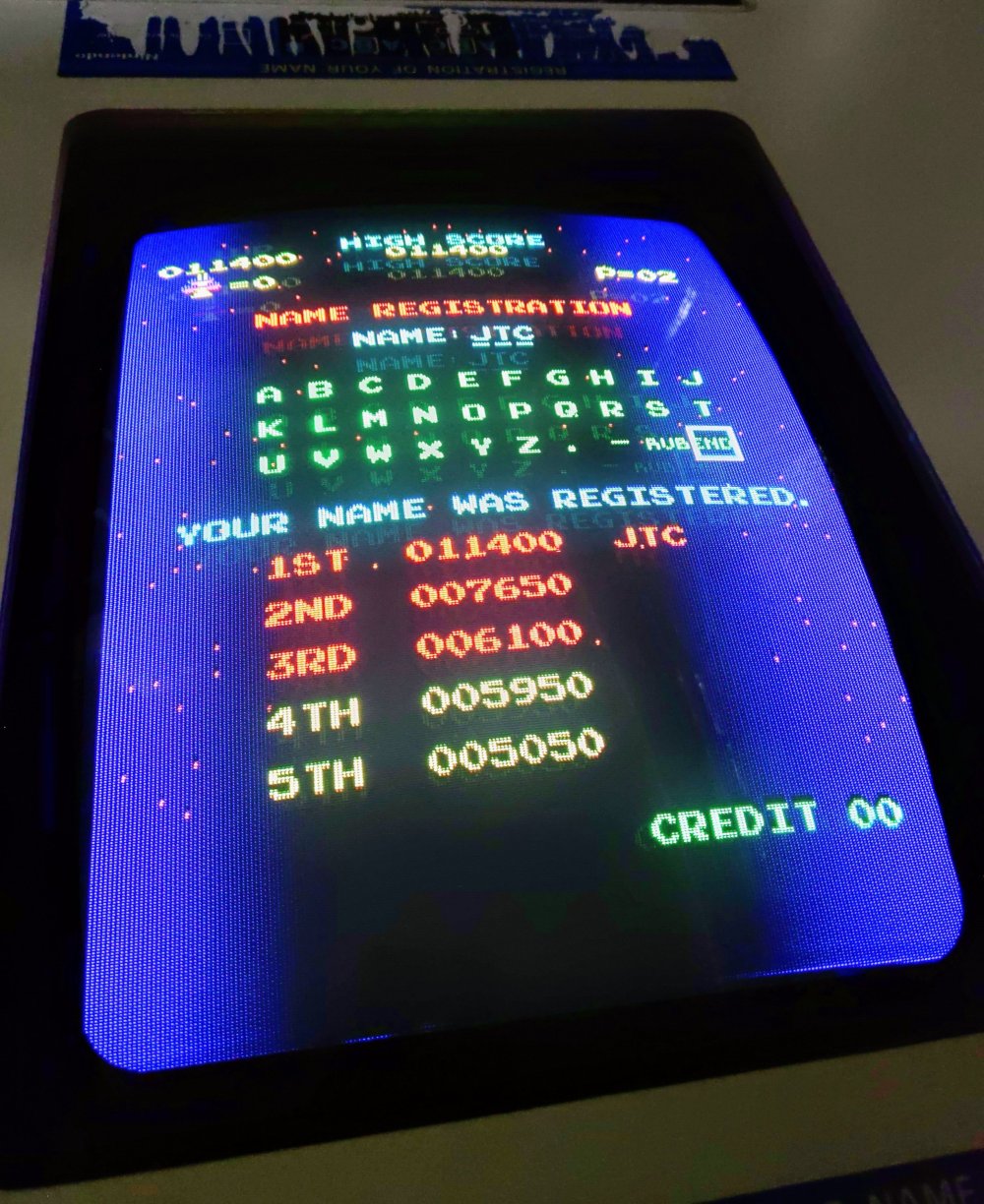 We had life! I added a couple of credits to the game and played a couple of games through. The fire button is sticking a little bit on the Player 1 control panel (I’m not making excuses honest!) so I’ll have to strip that down and clean it. For now, the game is fully playable.