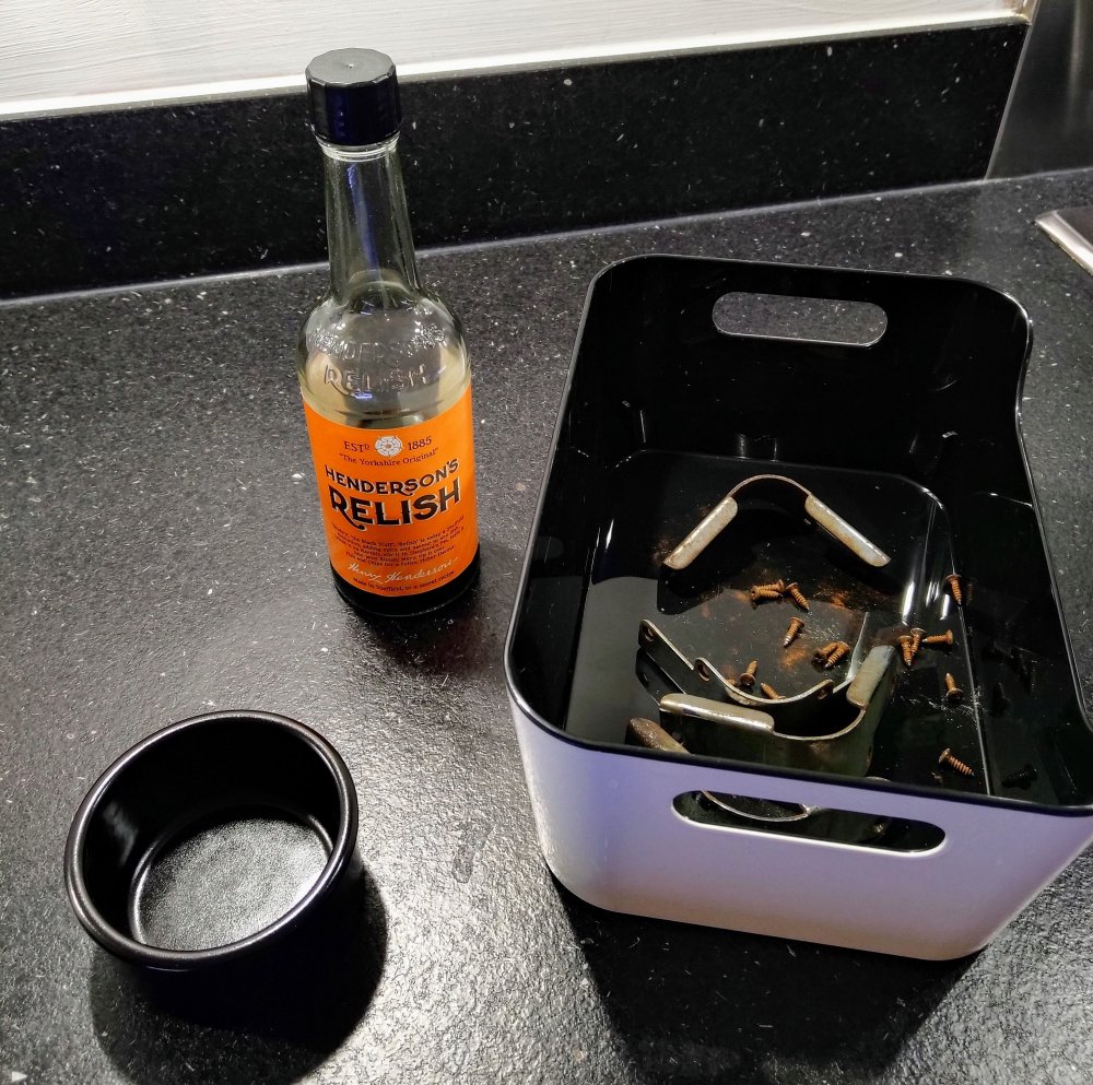 I soaked the parts overnight in Henderson’s Relish and then rubbed them with tinfoil under running water. The results were amazing!