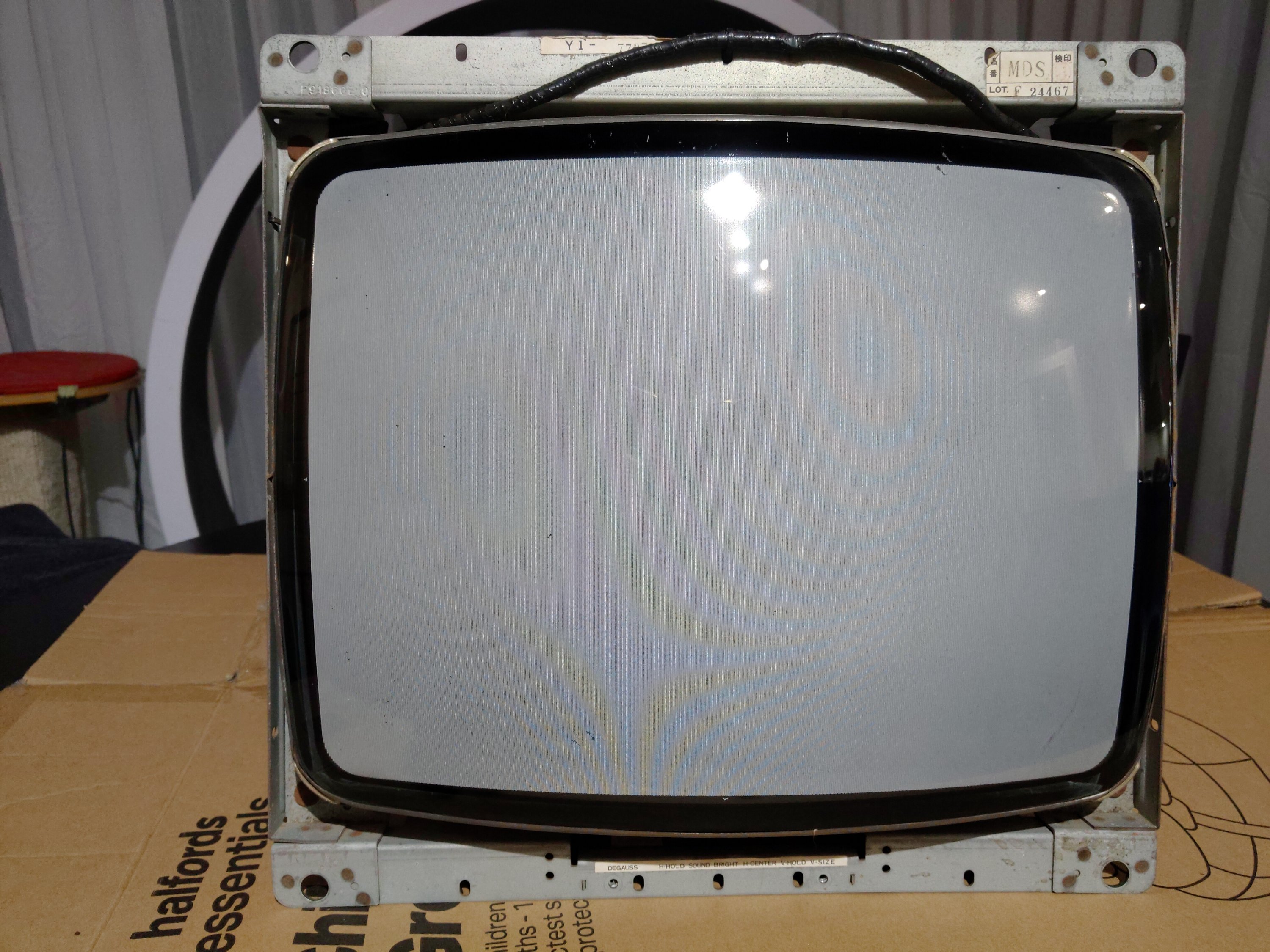 My friend Paul kindly offered to pick up the cab for me and brought the monitor to a meet at ArcadeClub. I brought the monitor home and set about assessing the situation: