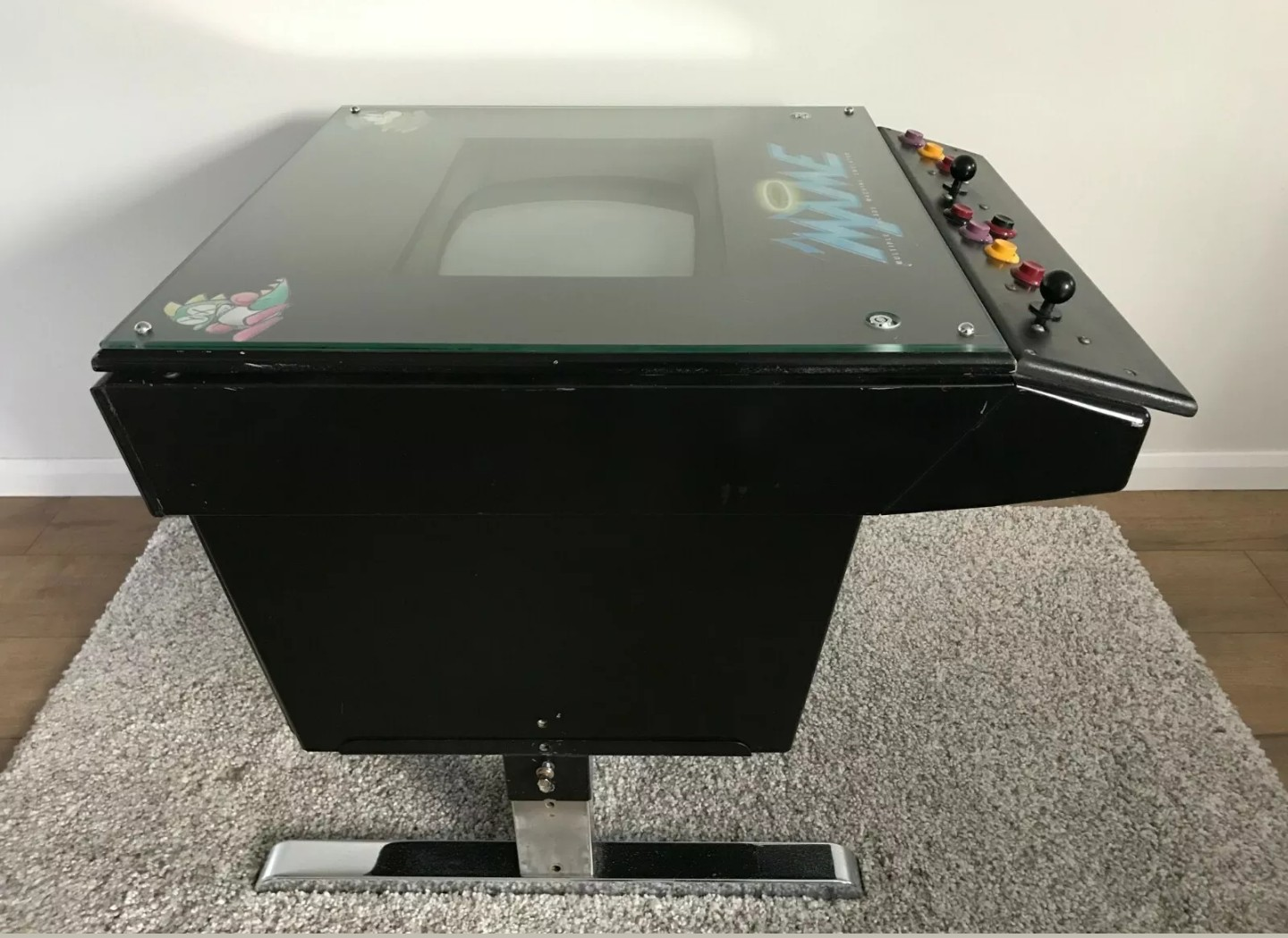 The hacked red tent was a purchase from eBay. It had been “converted” into a multigame cocktail, but appeared to be still using an original red tent monitor: