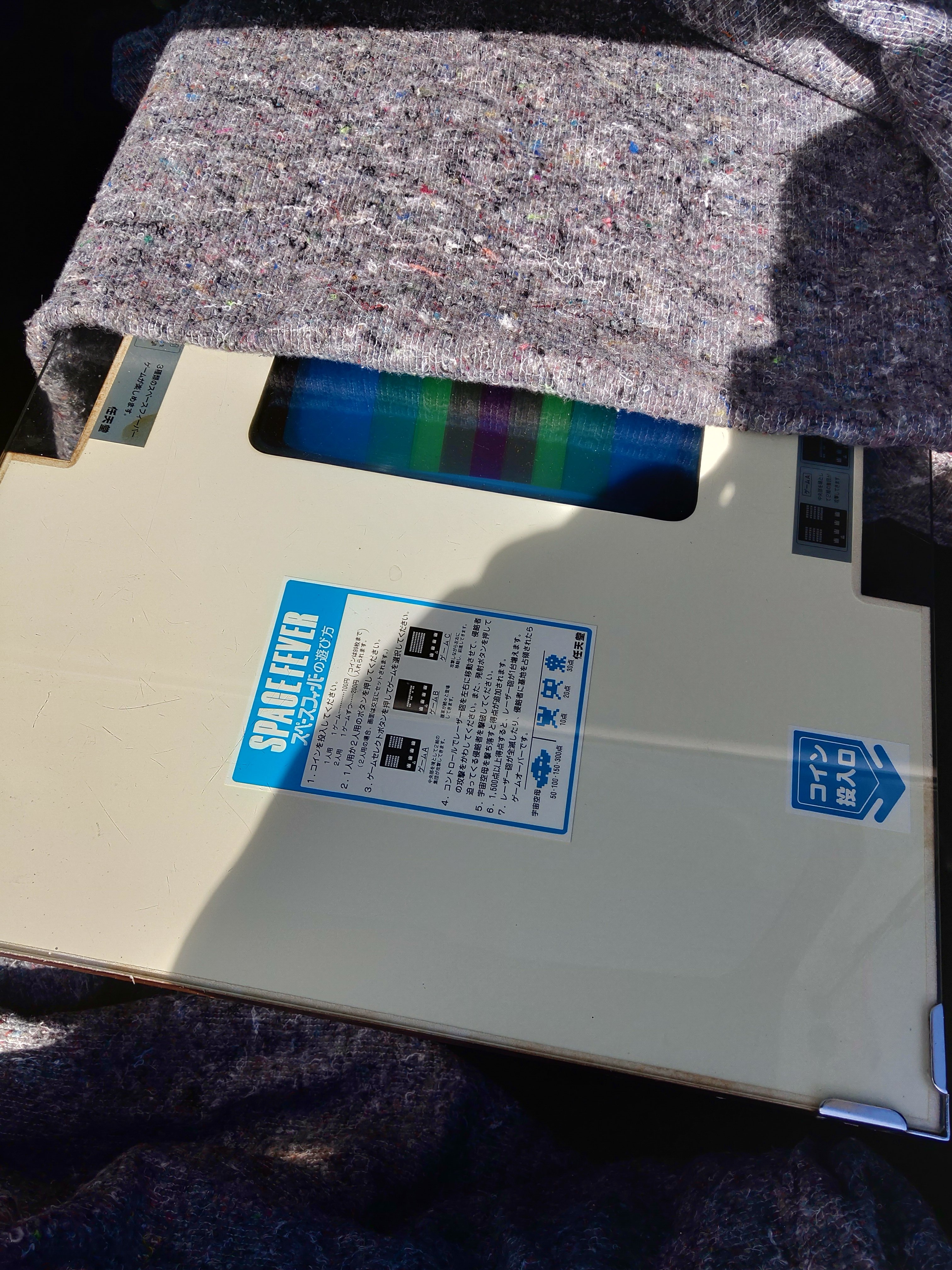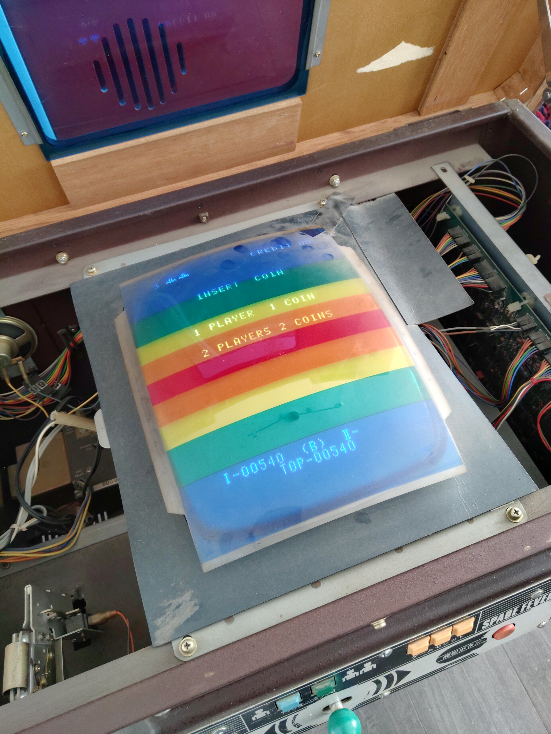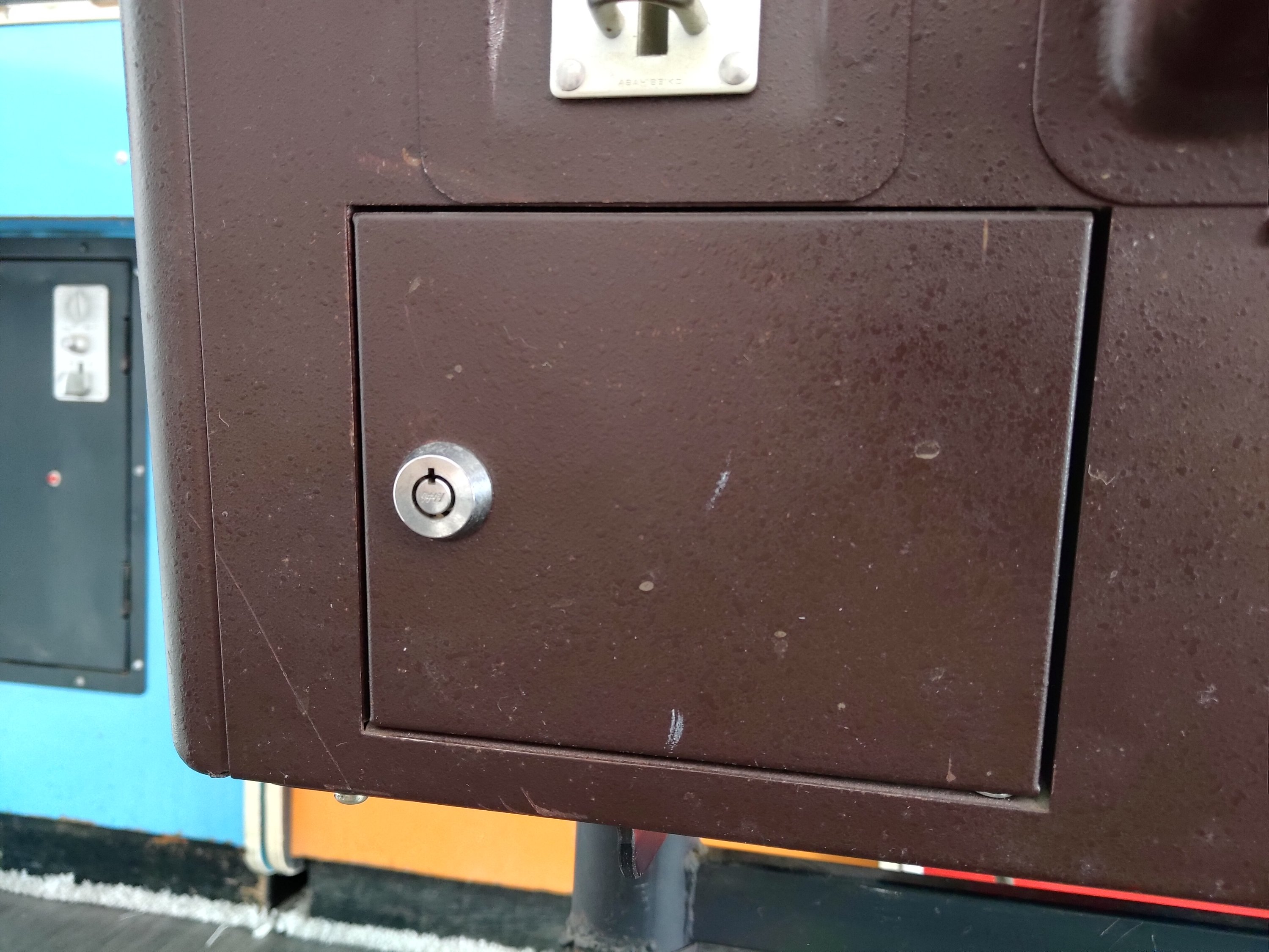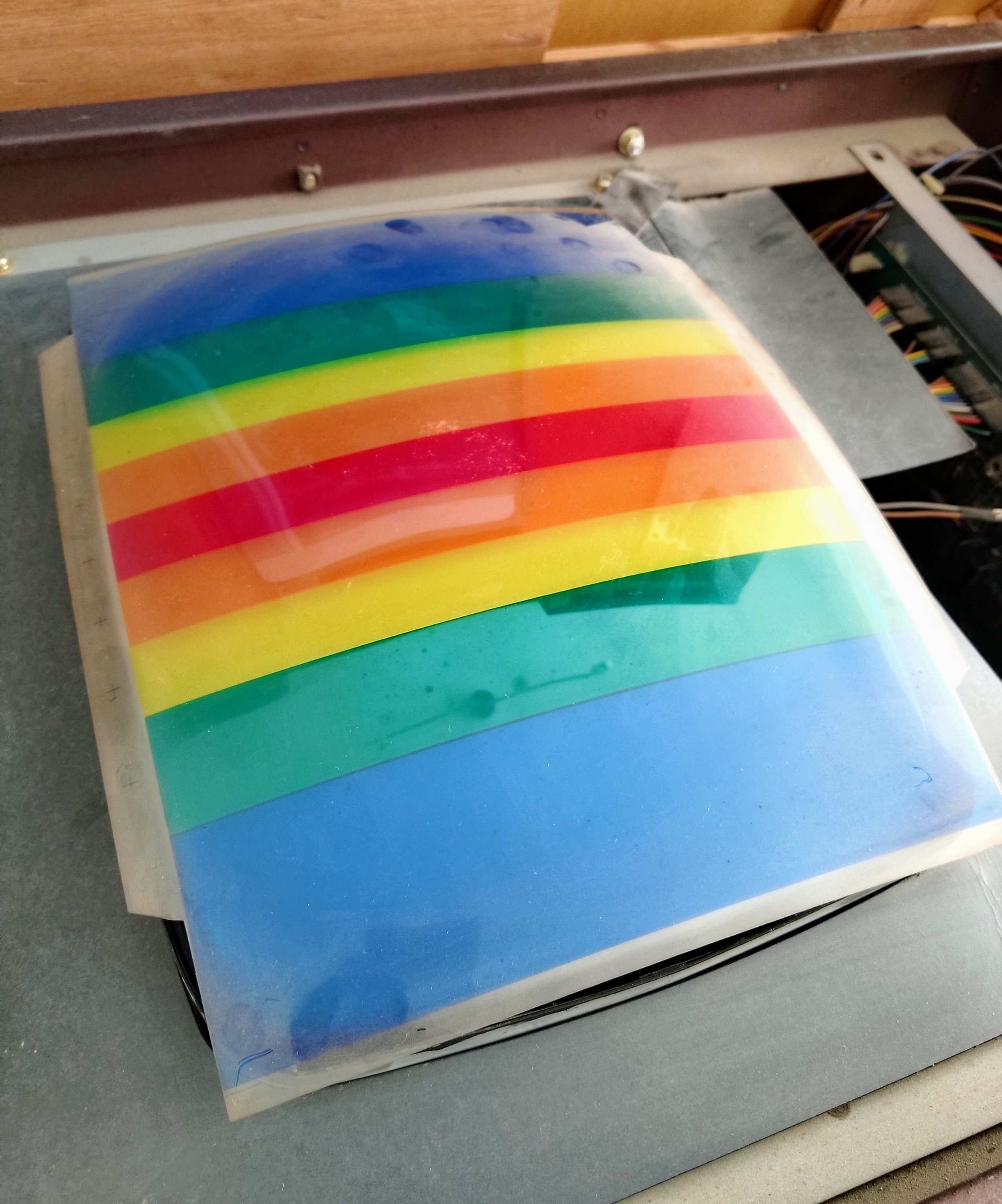 Next was to open the lid and see what lurked inside. I got given the original keys when I picked it up, which were the original Takigen keys to match the original locks! I opened the lid and was amazed at how clean it was. This cocktail also has one of the gorgeous striped, coloured overlays covering the monitor: