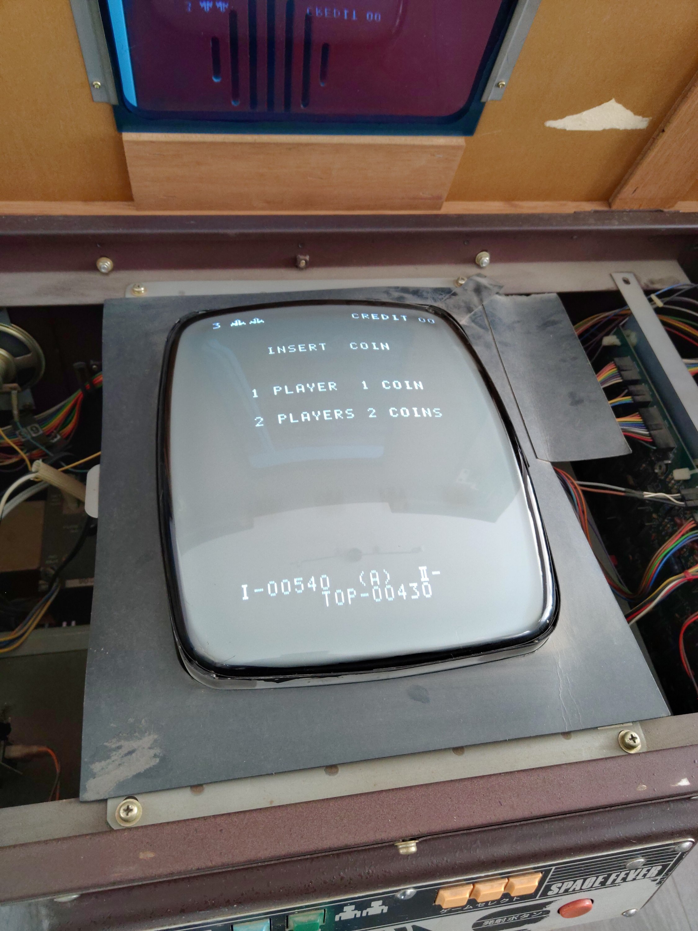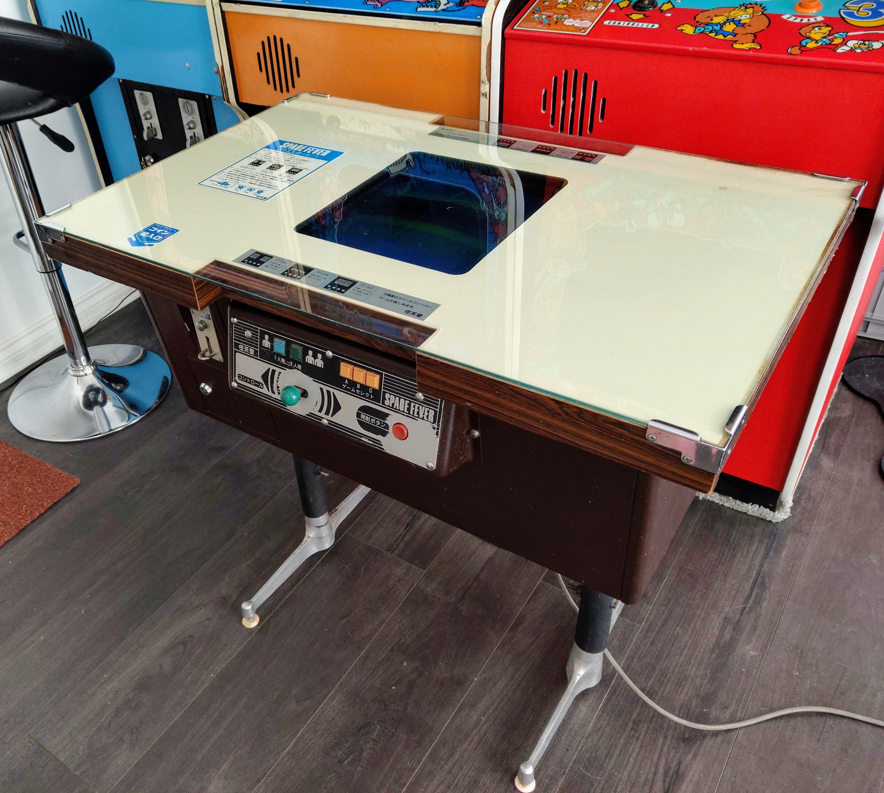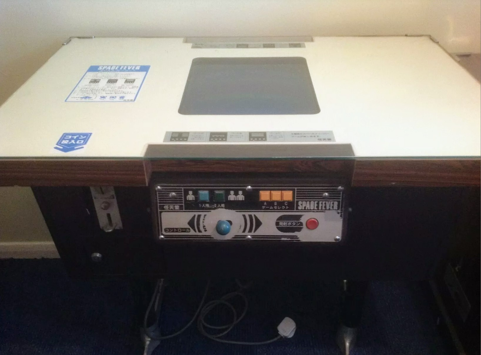 As no Space Fever cocktails were officially released in the UK, they were all imported from Japan, power converted and then adjusted to take old 10p pieces. This cocktail still has all of the original Yen decals: