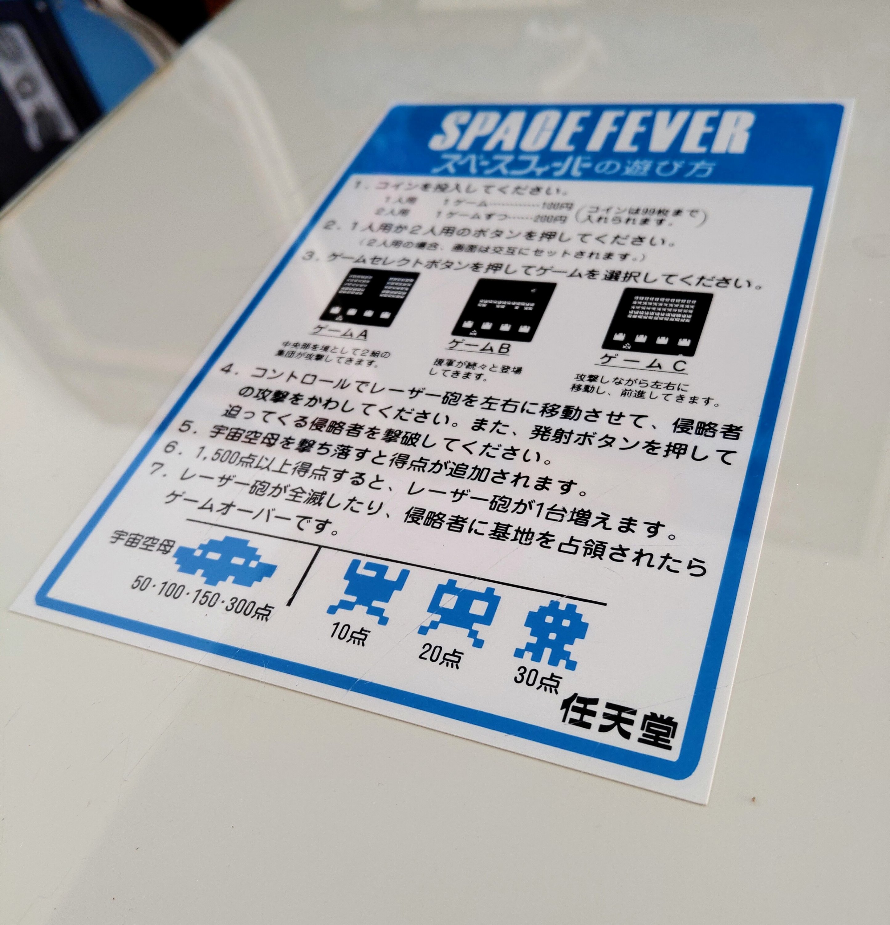 It has the normal wear on the control panels (much less on the Player 2 side!), but aside from that it’s in great condition. The instruction card was the part that caught my eye in the original listing as I’d been searching for a good scan for my other Space Fever cocktails… :